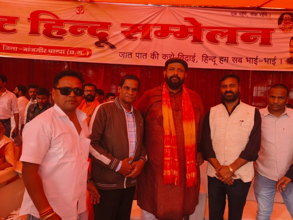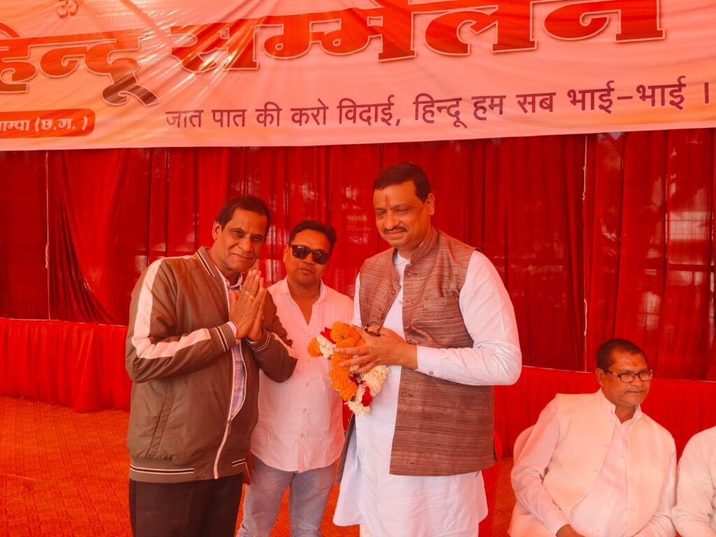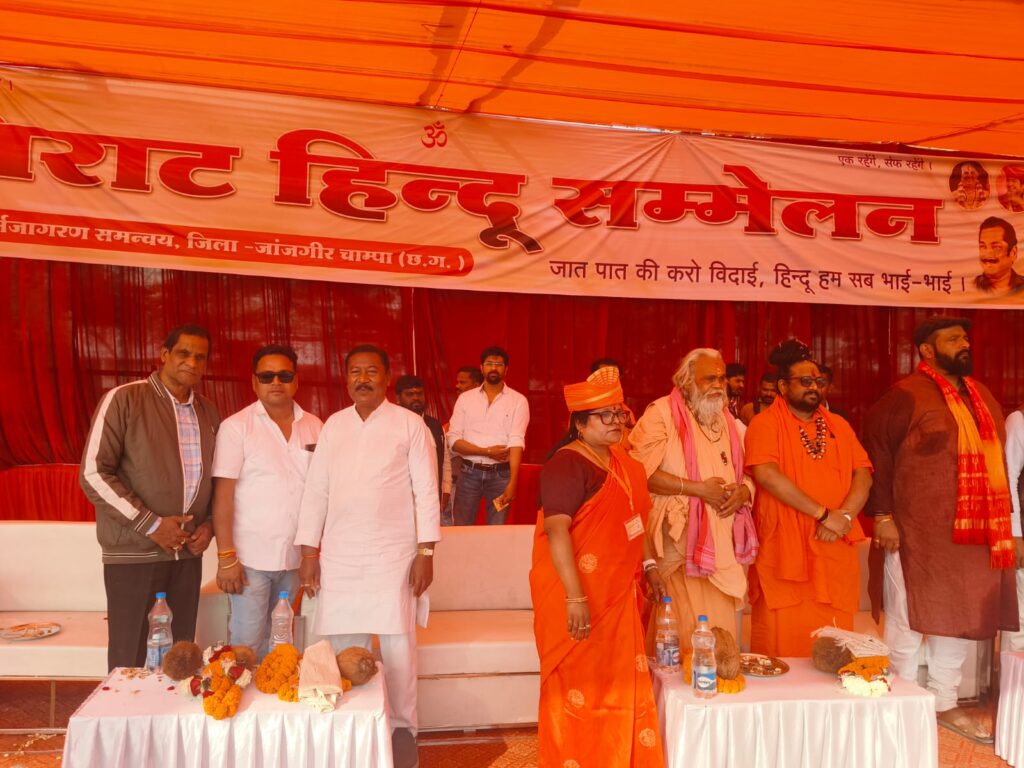 आज हिंदू धर्म में अखंड पैदा हो रही हैं । लोग प्रलोभन, लालच और बहकावे के कारण दूसरे धर्म की ओर भाग रहे हैं । उन्हें इस कार्यक्रम के जरिए ही जगाने और चादर तथा फादर से दूर रहने का आग्रह किया । कार्यक्रम का संचालन महावीर सोनी ने किया। इस अवसर पर विराट हिंदू सम्मेलन में डॉ शांति कुमार स्वर्णकार , नीलम सोनार, लक्ष्मी नारायण, पूर्व पार्षद संतोष कुमार ,कुंवर भिवेद्र बहादुर राजमहल चांपा, नपाध्यक्ष प्रदीप कुमार नामदेव, राजन गुप्ता, ग्यारसी मोदी, कार्तिकेश्वर स्वर्णकार, स्वर्णकार समाज के केंद्राध्यक्ष जयदेव सोनी, भूपेंद्र देवांगन, डॉ श्रीमति मीरा पत्की , श्रीमति पुष्पा- अनिष सिह , चूड़ामणि राठौर, राजकुमार साहू, इंजीनियर रवि पाण्डेय, गोपाल मित्तल, कमललाल देवांगन , नरेन्द्र ताम्रकार, इंजीनियर श्रीमति मंजूषा पाटले, डॉ श्रीमति धनेश्वरी जागृति, अन्नपूर्णा सोनी, रजनी देवांगन, श्रीमति संतोषी दुबे सहित बड़ी संख्या में लोग मौजूद थे ।
