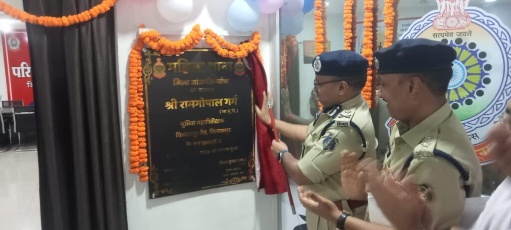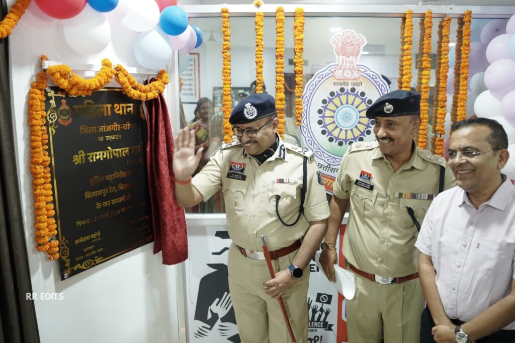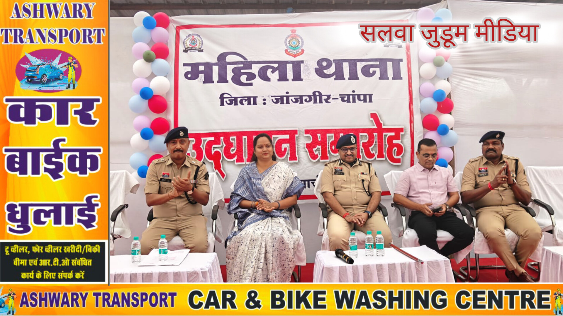 जांजगीर-चांपा (सलवा जुडूम मीडिया) जांजगीर-चांपा जिले में कलेक्ट्रेट के आस-पास पहली महिला थाना का विधि-विधान के साथ दिनांक 31 मार्च,2026 को हुआ । इस अवसर पर बिलासपुर रेंज के पुलिस महानिदेशक श्रीयुत रामगोपाल गर्ग ने फीता काटकर और दीप प्रज्ज्वलित कर किया उद्घाटन ! उद्घाटन समारोह में जांजगीर-चांपा जिले के पुलिस अधीक्षक विजय कुमार पाण्डेय, कलेक्टर जांजगीर-चांपा जन्मेजय महोबे, सक्ती पुलिस अधीक्षक प्रफुल्ल कुमार, जिला पंचायत अध्यक्ष इंजीनियर सत्यलता मिरी, श्रीमति प्रेमलता कौशिक, नपाध्यक्ष रेखा गढेवाल, बेटी-बचाओ एवं बेटी पढ़ाओ की सह-संयोजिका तथा भाजपा महिला मोर्चा प्रदेश कार्यसमिति सदस्य श्रीमति संगीता पाण्डेय बहनजी, श्रीमति तान्या – रवि अनुरागी, श्रीमति संतोषी सिंह , संतोषी दुबे सहित बड़ी संख्या में विभिन्न दलों के जनप्रतिनिधि, पुलिस अधिकारी और कर्मचारी उपस्थित रहे ।