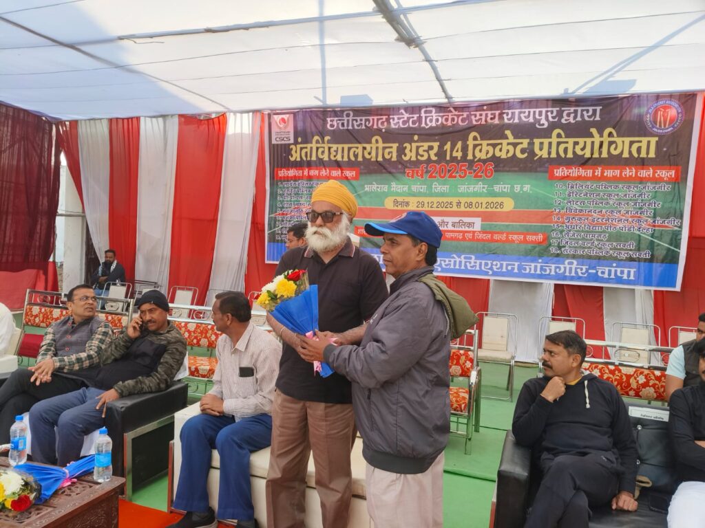 दिनांक 29 दिसंबर 2025 से दिनांक 08 जनवरी 2026 तक भालेराव मैदान चांपा ,जिला जांजगीर-चांपा छत्तीसगढ़ बालक-बालिका शासकीय स्कूल बरपाली स्कूल चांपा, सेजस पामगढ़ एवं वर्ल्ड स्कूल सक्ती जिला क्रिकेट एसोसिएशन जांजगीर-चांपा द्वारा आयोजित अंतरविद्यालयीन प्रतियोगिता के उद्घाटन समारोह में मुख्य अतिथि जन्मेजय महोबे जिलाधीश जांजगीर-चांपा, अध्यक्षता विजय कुमार पाण्डेय पुलिस अधीक्षक जांजगीर-चांपा तथा विशिष्ट अतिथि सुब्रत प्रधान डिप्टी कलेक्टर प्रभारी खेल अधिकारी, प्रदीप कुमार नामदेव अध्यक्ष नगर पालिका परिषद चांपा, अमरजीत सिंह खटकर उपाध्यक्ष नपा, रामसजीवन सोनवानी सीएमओ नगरपालिका चांपा तथा अतिथियों में जिला क्रिकेट एसोसिएशन के अध्यक्ष भीवेद्र बहादुर सिंह, उपाध्यक्ष सत्यनारायण सोनी, सचिव पद्मेश शर्मा, कोषाध्यक्ष योगेंद्र तिवारी, संरक्षक मनोज मित्तल, पुर्व नपाध्यक्ष जय थवाईत , भाजपा नेता गोपी बरेठ, सुशांत चौधरी, मीडिया जगत से शशिभूषण सोनी, राजीव मिश्रा , लक्ष्मीचंद देवांगन ,सुशांत चौधरी, राम वल्लभ सोनी मंचस्थ रहे । उद्घाटन समारोह का सफल संचालन पुरुषोत्तम शर्मा ने किया। मैच का कामेटरी विकास सिंह और विजय कुमार थवाईत तथा बब्बू खान की टीम ने संयुक्त रूप से किया । एंपायर अनुराग चंद्रा एवं गणेश ठाकुर ने किया । सभी खिलाड़ियों के लिए प्रत्येक मैच में स्वल्पाहार तथा सुस्वादु भोजन की व्यवस्था की गई हैं ।