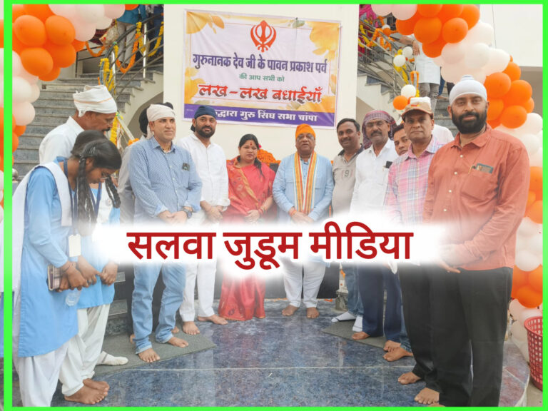 चांपा (सलवा जुडूम मीडिया ) गुरुद्वारा प्रबंधक कमेटी, तथा पंजाबी समाज समिति के सयुक्त तत्वाधान में नवनिर्मित गुरु सिंग सभा, गुरुद्वारा,बरपाली चौक चांपा में दिनांक 6 नवंबर 2025 को गुरु ग्रंथ साहिब का अखंड पाठ की समाप्ति, तत्पश्चात कीर्तन दरबार तथा आम लंगर का आयोजन किया गया । दोपहर 1:30 बजे गुरु का लंगर प्रारंभ हुआ जो कि देर सायंकाल तक चलता रहा । सिक्ख धर्म के प्रथम गुरु, करुणा,सत्य,संयम और समानता के प्रतिक श्रीगुरु नानक देव जी के प्रकाश उत्सव की सभी लोगों ने एक-दूसरे को लख-लख बधा दी ।