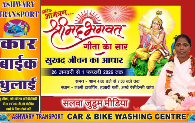 श्रीमद्भागवत कथा समाप्ति के पश्चात् पोर्टल न्यूज सलवा जुड़ूम के लेखक शशिभूषण सोनी से ब्रम्हकुमारी प्रवक्ता शशिप्रभा देवी ने आध्यात्मिक ज्ञान और भगवान की महिमा के बारे में चर्चा की और उन्होंने मावन जीवन के उद्देश्यों को समझने और ज्ञान प्राप्त करने के लिए कहा ।समाज में आध्यात्मिकता और धार्मिकता को बढ़ावा देने पर विचार व्यक्त की । हजारी गली अम्बे रेसीडेंसी में चल रहे श्रीमद्भागवत कथा में मुख्य यजमान लक्ष्मीचंद देवांगन और उनकी अर्द्धांगिनी श्रीमति उमा देवांगन हैं ।