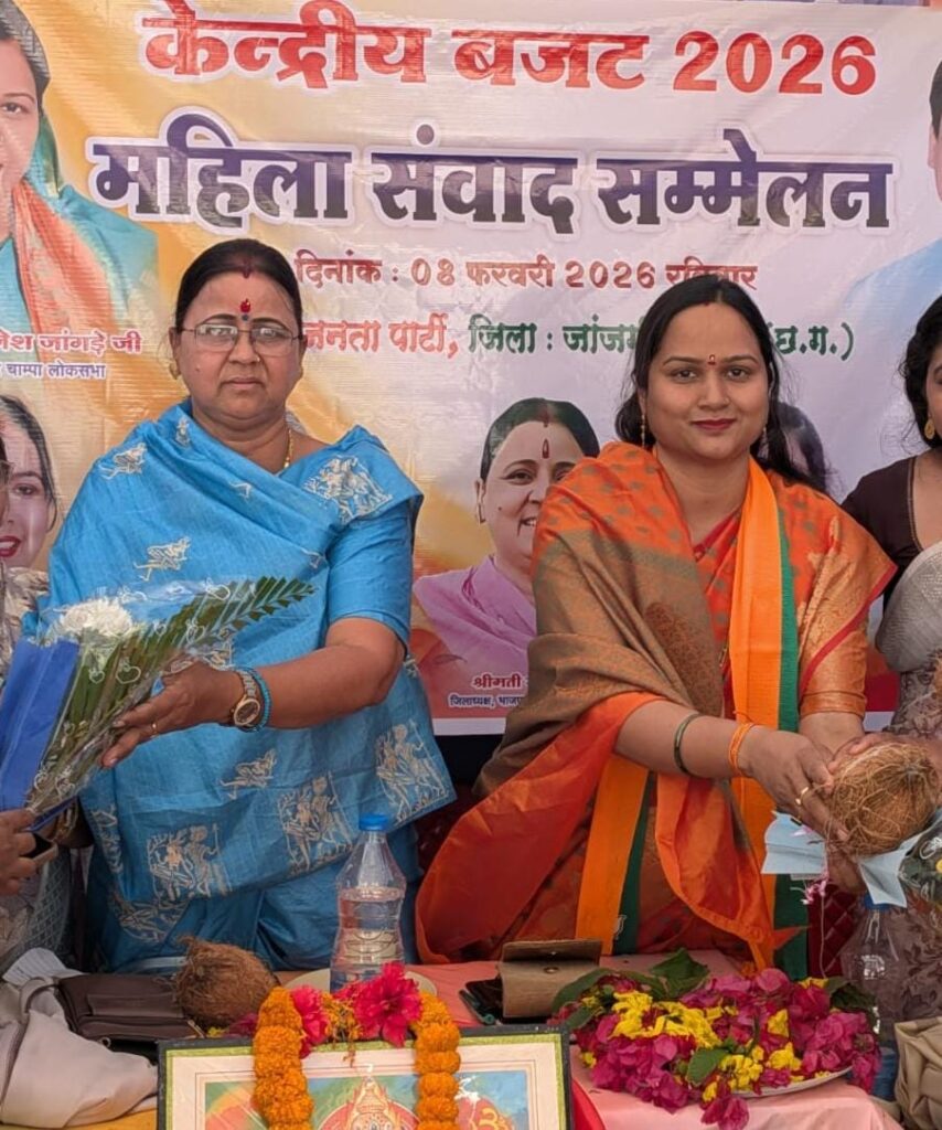 अंत में समारोह की अध्यक्षता करती हुई श्रीमति संतोषी सिंह जिलाध्यक्ष भाजपा महिला मोर्चा जांजगीर-चांपा ने केंद्रीय बजट -2026 को महिलाओं के सशक्तिकरण करण के लिए एक नया आयाम के बारे में जानकारी दी और कहा कि इस बजट में प्रत्येक जिले में बालिका छात्रावास की सुविधा और सी-मार्ट खोलने का प्रावधान हैं जिससे सुदूर ग्रामीण क्षेत्रों में रहने वाली हमारी बहनें अपने हस्त निर्मित समानों जैसे आचार, पापड़, खिलौने और कढ़ाई बुनाई तथा रंग-बिरंगे पर्दे सी मार्ट खोलकर बेच सकती हैं। उन्होंने एक उद्यमी सोच और महिला सशक्तिकरण को आगे बढ़ाने का बजट को उचित माध्यम बताया। उन्होंने नारी शक्ति को शिक्षा , स्वास्थ्य , रोजगार, सुरक्षा और आत्म-निर्भरता के हर क्षेत्र में मजबूत बनाने का काम किया हैं, इसके लिए देश की वित्तमंत्री निर्मला सीतारमण और यशस्वी प्रधानमंत्री नरेंद्र मोदी अभिनंदन के पात्र हैं ।
