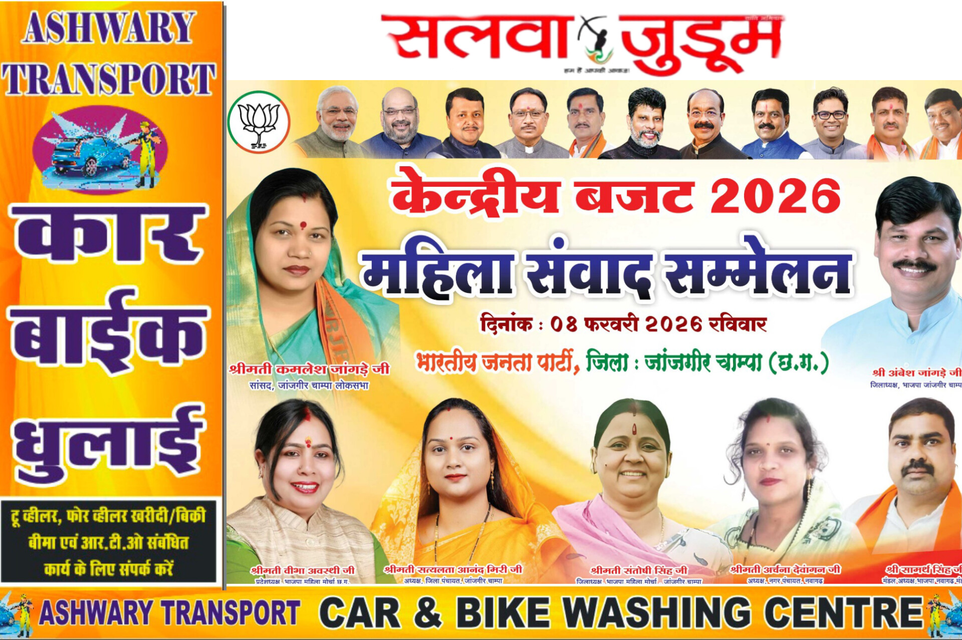 जांजगीर-चांपा (सलवा जुडूम मीडिया) भारतीय जनता पार्टी महिला मोर्चा जांजगीर-चांपा द्वारा श्रीमति संतोषी सिह के नेतृत्व केंद्रीय बजट संवाद-2026 कार्यक्रम आयोजित किया गया । यह आयोजन महिला मोर्चा की प्रदेशाध्यक्ष श्रीमति विभा अवस्थी ,श्रीमति कमलेश जांगड़े सासंद जांजगीर लोकसभा तथा अंबेश जांगड़े जिलाध्यक्ष भाजपा जिला जांजगीर-चांपा के मार्गदर्शन में बजट पर एक-दिवसीय व्यापक चर्चा की गई । यह संवाद कार्यक्रम ग्राम हीरागढ़ टूरी, पामगढ़ के चौपाल स्थान पर आयोजित किया गया । इस अवसर पर जिले की महिला मोर्चा की पदाधिकारियों ने अपने-अपने विचार रखे। गांव के मुख्य स्थान चौपाल में मुख्य वक्ता इंजीनियर श्रीमति सत्यलता मिरी ने केंद्रीय बजट में सरकार की योजनाओं और अर्थव्यवस्था में बजट के महत्वपूर्ण घोषणाओं को चिह्नित करते हुए जीरामजी, लखपति योजना,स्व सहायता समूह के माध्यम से छोटे उद्योग को बढ़ावा देने का बजट निरुपित किया। इस अवसर पर ग्रामीणों के साथ महिलाएं भी बड़ी उत्सुकता के साथ बजट पर प्रतिक्रिया सुनने के लिए शामिल हुई । इस अवसर पर उन्होंने देश की वित्त मंत्री निर्मला सीतारमण द्वारा केंद्रीय बजट 2026 -2027 की सरकार के प्रयासों की सराहना की और इसे महिलाओं के लिए बहुत ही उपयोगी बताया ।