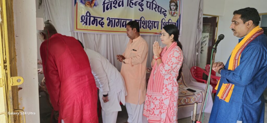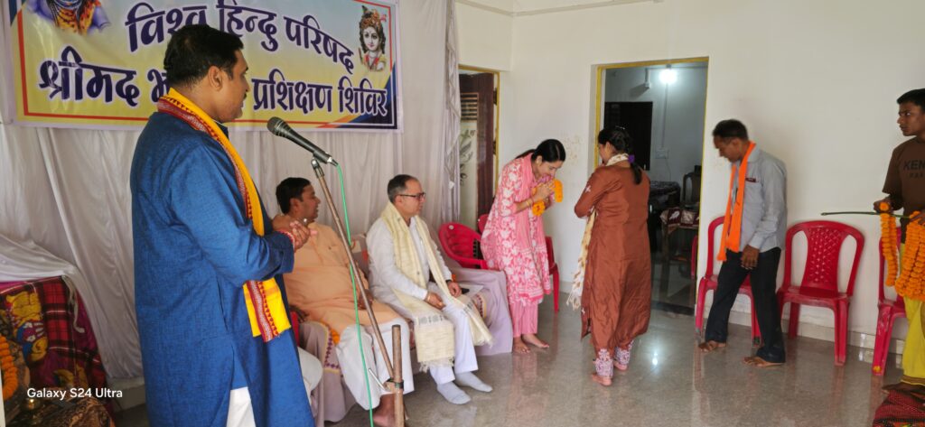 जांजगीर-चांपा (सलवा जुडूम मीडिया ) विश्व हिन्दू परिषद छत्तीसगढ़ प्रांत के मंदिर एवं अर्चक पुरोहित संपर्क विभाग के तत्वावधान में आयोजित चार दिवसीय प्रांतीय पुरोहित प्रशिक्षण एवं अभ्यास वर्ग का समापन बुधवार 8 अक्टूबर 2025 को नैला जांजगीर के आजाद चौक स्थित मनोज पाण्डेय के निवास पर सम्पन्न हुआ। इस आवासीय प्रशिक्षण वर्ग में प्रांतभर के पंडित, पुजारी, गायता, अर्चक, पुरोहित और कथाकारों ने भाग लिया। प्रशिक्षण के दौरान पूजा-अर्चना की विधि, समाज में पुरोहितों की भूमिका, व्रत-पर्वों का निर्धारण, मंत्रों का शुद्ध उच्चारण तथा श्रीमद्भागवत कथा के माध्यम से हिन्दू जागरण जैसे विषयों पर विस्तृत प्रशिक्षण दिया गया।